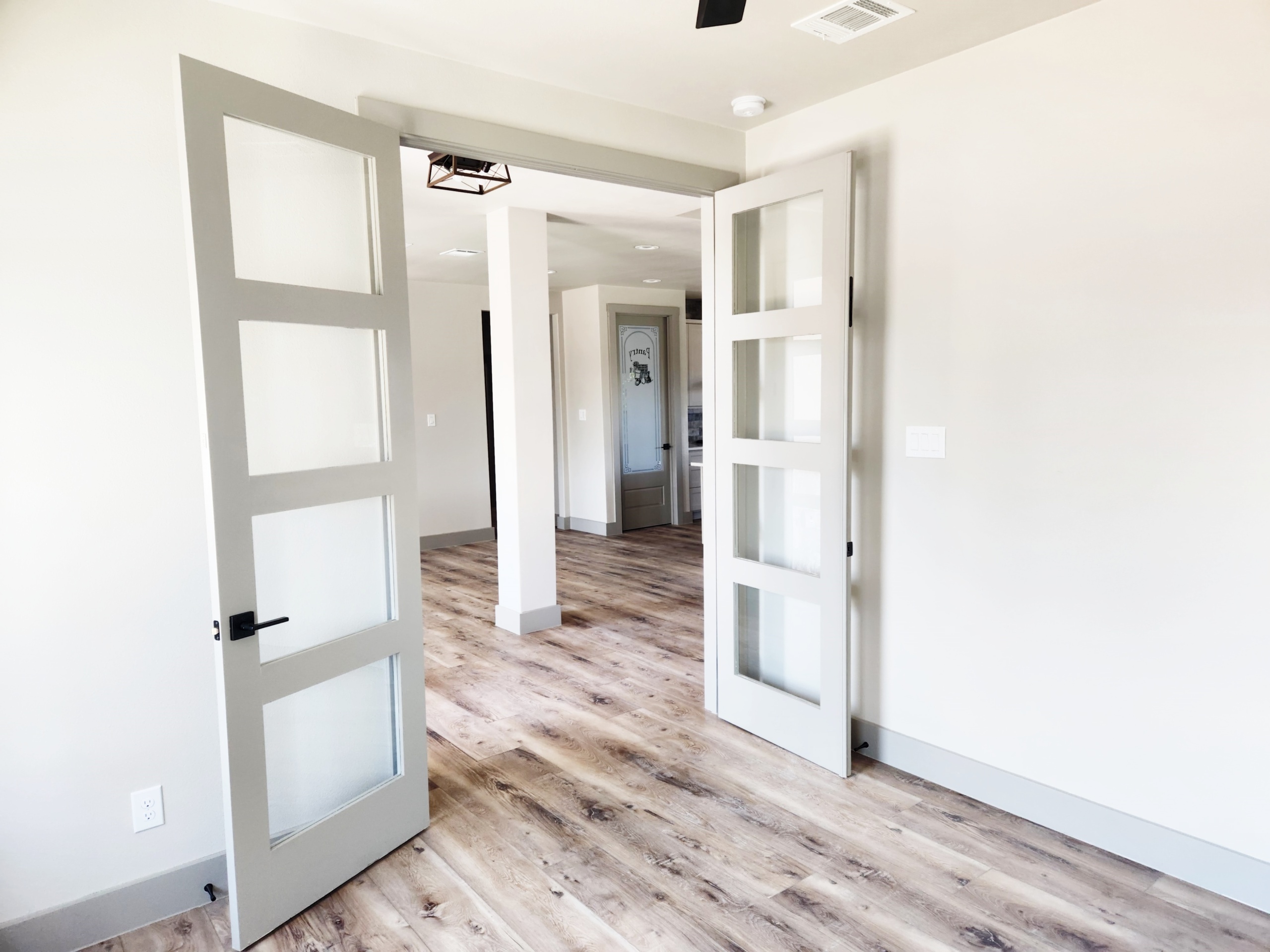 Expansive Great Room: Anchored by large windows and direct access to a covered patio for natural light and outdoor living.